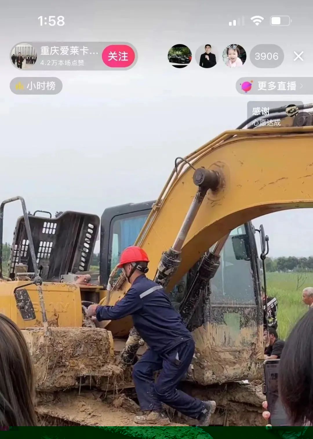 设备涉水多时,胡工判断需把设备拖上岸后进行下一步处理,否则会影响设备后续使用。经过牵引救援,设备终于成功“脱险”。