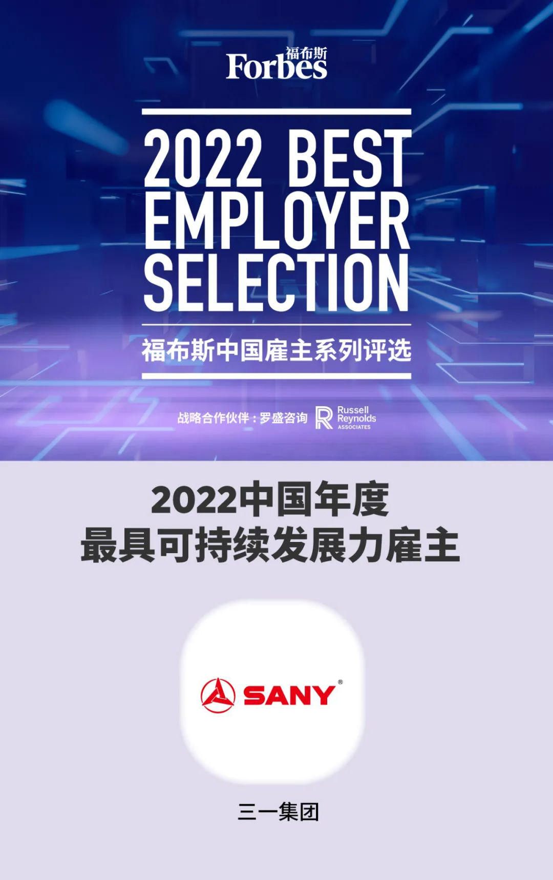 7月8日,福布斯中国联合全球领导力咨询公司——罗盛咨询公司正式发布2022福布斯中国•最佳雇主系列评选结果,好体育投注官网集团荣获“2022中国年度最具可持续发展力雇主”称号,是榜单中唯一的装备制造企业。