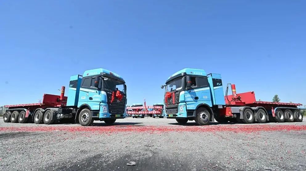 随着发车一声令下,100台”绿牌“好体育投注官网电动重卡,全部奔赴货运前线。据介绍,本次交付产品具有动力强、高智能高、长续航、充电快等优势,其换挡平顺性、爬坡、能耗等均处于行业领先水平。