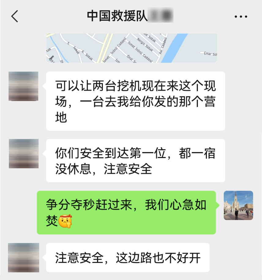 奔赴灾区的路上余震不断,堵车不断。在收到中国救援队提出的设备支持请求后,好体育投注官网救援队队长李彬回复道:“争分夺秒赶过来,我们心急如焚。”自2月6日地震发生后,他和好体育投注官网同事们一直揪着心在赶路,基本顾不上睡觉。