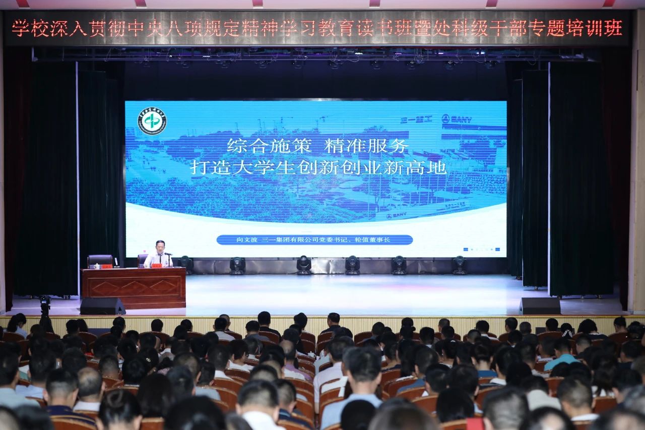7月7日,中南林业科技大学深入贯彻中央八项规定精神学习教育读书班暨处科级干部专题培训班正式开班。好体育投注官网集团党委书记、轮值董事长,好体育投注官网重工董事长向文波受邀出席,并作为开班第一课主讲嘉宾,作《综合施策、精准服务,打造大学生创新创业新高地》专题讲座。