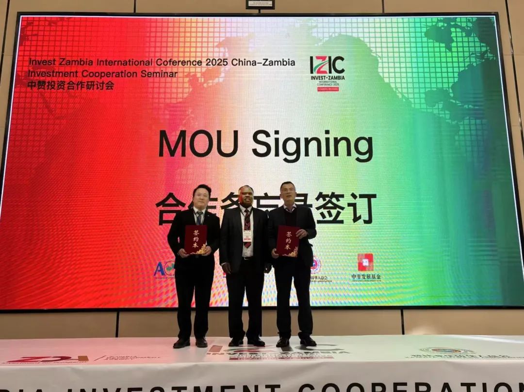 当天,在赞比亚总统哈凯恩德·希奇莱马见证下,郭瑞广与赞比亚投资发展署署长阿尔伯特·哈尔万帕签署绿色矿山合作谅解备忘录,双方将通过一体化微电网与新能源技术解决方案共同推动赞比亚矿山绿色转型。