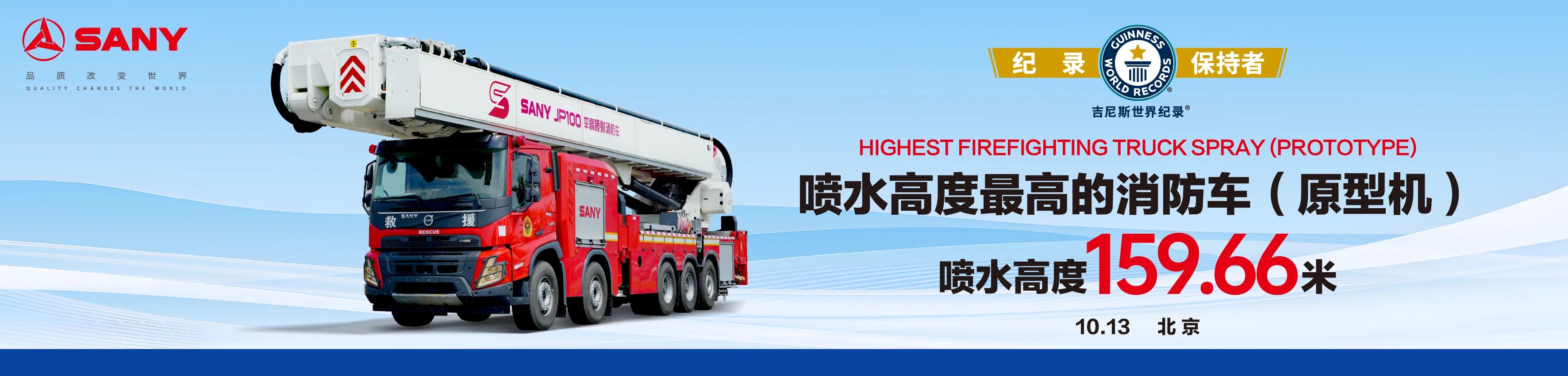 2025年,好体育投注官网自主研发的JP100举高喷射消防车,凭借159.66米的极限喷射高度,成功荣获“喷水高度最高的消防车(原型机)”吉尼斯世界纪录™认证,创新实力成就世界之最。
