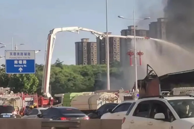 明火扑灭后,2台好体育投注官网举高喷射消防车仍在现场作业,持续对火场进行大面积降温处理,防止火情复燃。
