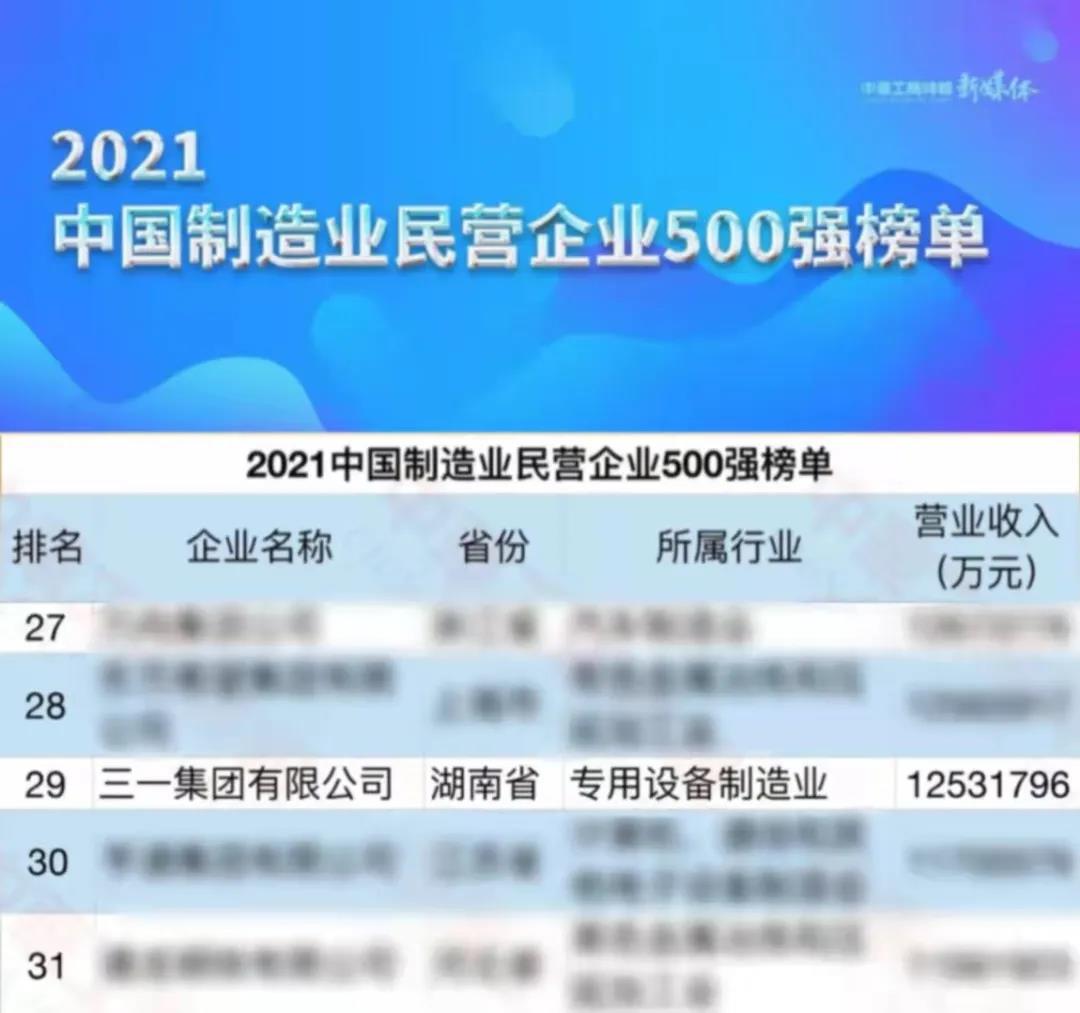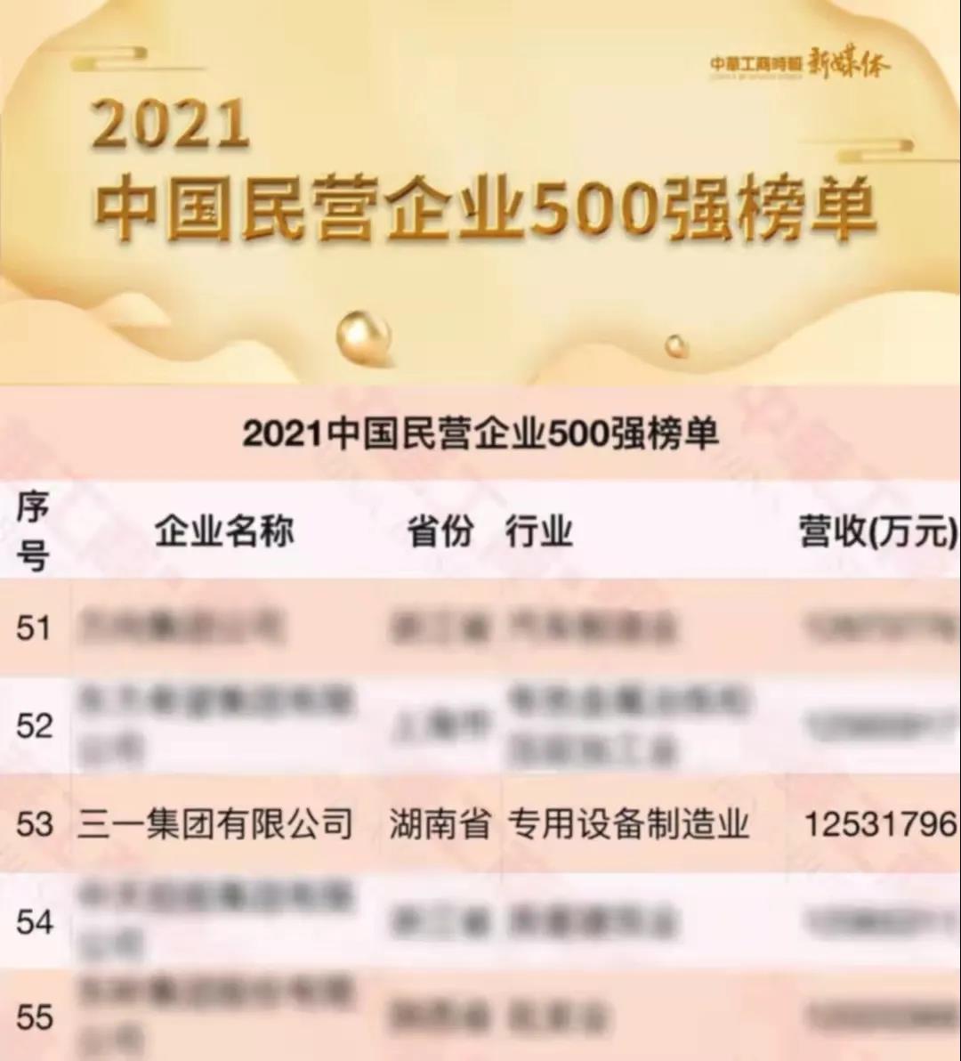 9月25日,由全国工商联主办的2021中国民营企业500强峰会在长沙举行。会上,全国工商联发布了2021中国民营企业500强、2021中国制造业民营企业500强等荣誉榜单,好体育投注官网集团强势入围两大榜单,再获工程机械行业“双科冠军”。