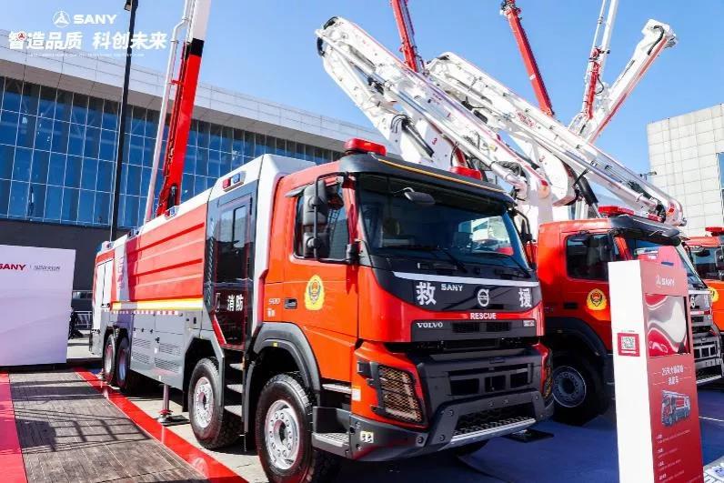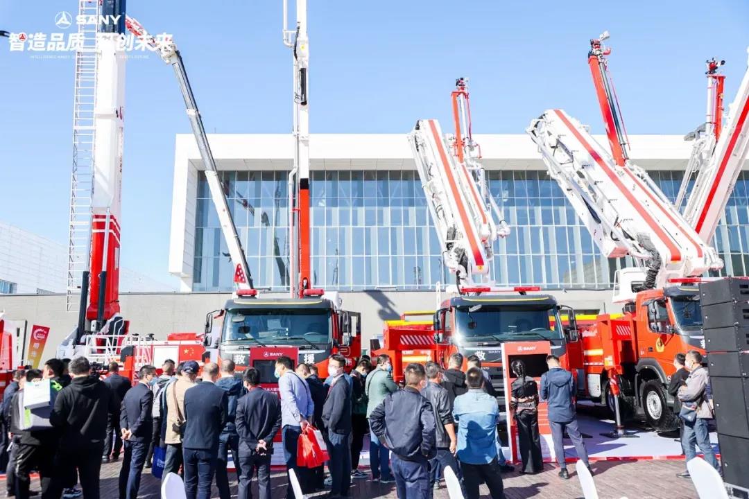 全球作业高度最高的65米大跨度举高喷射消防车、全球首创的41米固液气多剂联用举高喷射消防车、全球首台遥控无人驾驶举高喷射消防车等多款全球“首台、首创”悉数亮相,受到业界巨大关注。