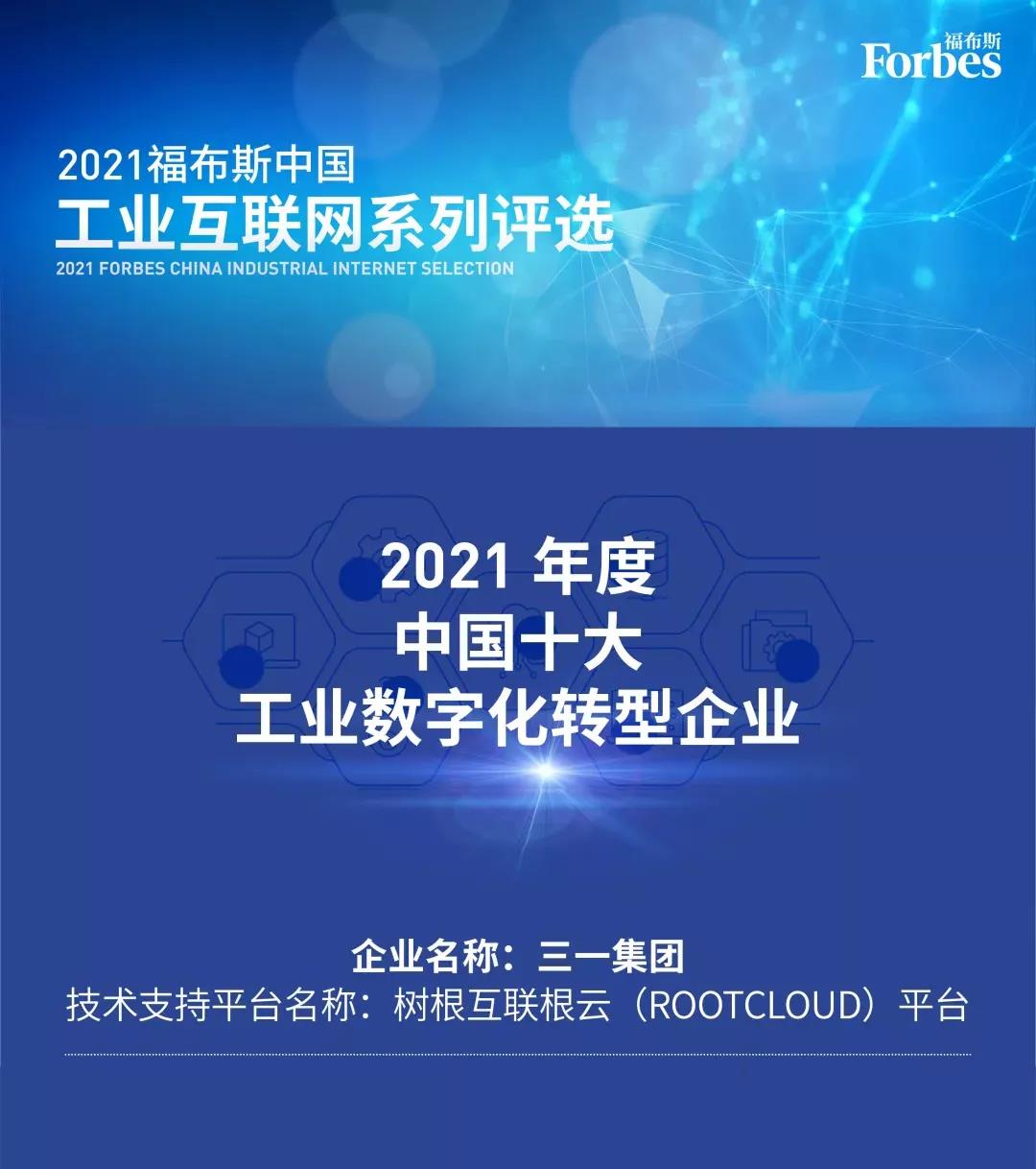11月10日,“2021福布斯中国工业互联网系列评选”结果公布,依托树根互联根云(ROOTCLOUD)平台的技术支持,好体育投注官网集团斩获“福布斯中国2021年度中国十大工业数字化转型企业”大奖,系工程机械行业唯一获奖企业,引领中国制造数字化转型。