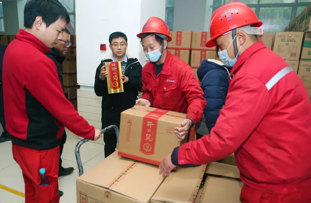 工程车辆事业部的梁巍然抱着满满大礼包,喜笑颜开。“公司把过年吃的坚果、红枣、糖果等全都备齐了,又可以过一个舒心的年了。”