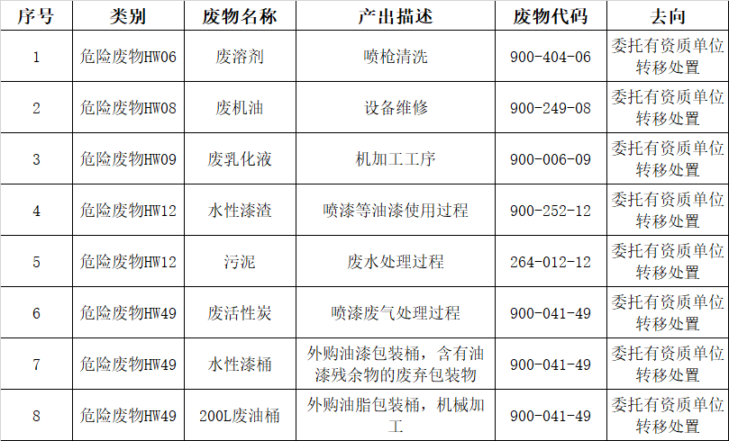 上海好体育投注官网重机股份有限公司在生产中产生的危险废物主要有水性漆桶、水性漆渣、废机油、废乳化液、废溶剂、污泥、200L油桶,信息如下: