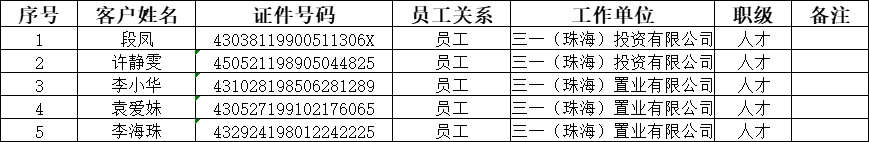 为增加员工归属感,我司开发位于珠海市金湾区平沙镇铭恩路31号【好体育投注官网蓝海花园项目】用于引进行业人才,为保障房住不炒的居住用途及员工购房资格合规性,根据我司制定的《关于好体育投注官网蓝海花园购房资格管理办法》,现对购房名单做如下公示: