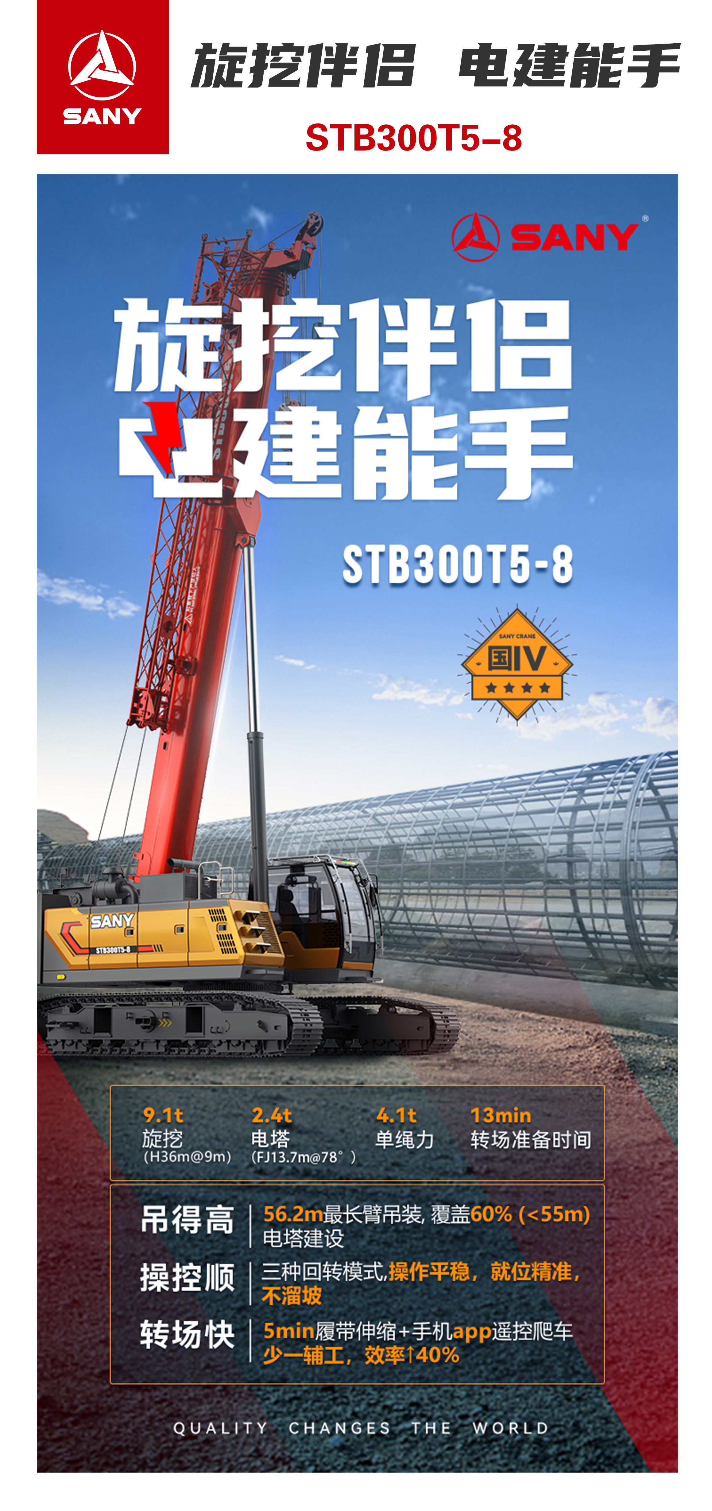 56.2m最长臂吊装,覆盖60%(<55m)