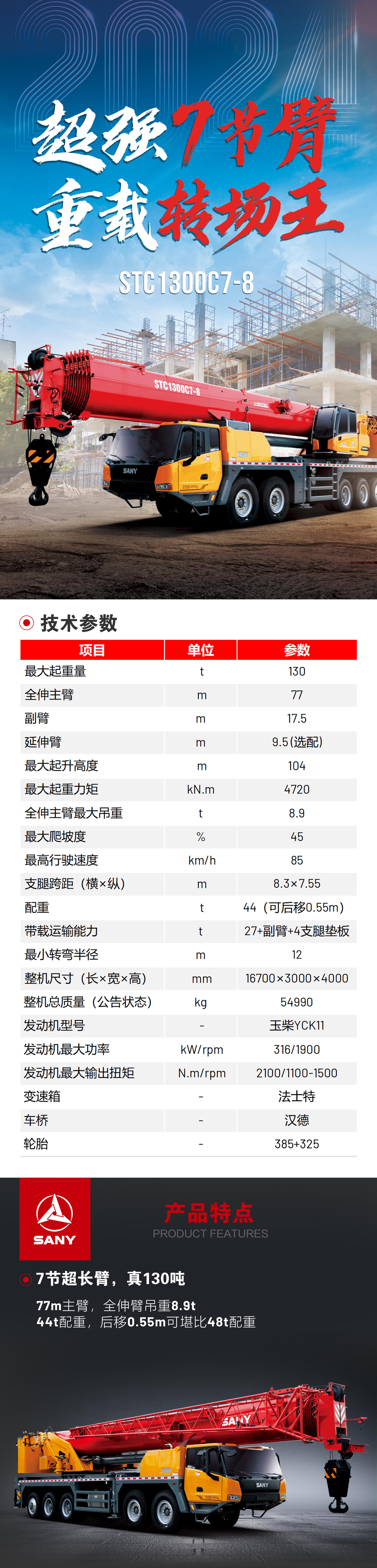 随车可带27t配重+副臂+支腿垫板+备胎短途转场,真重载转场速度50km/h
