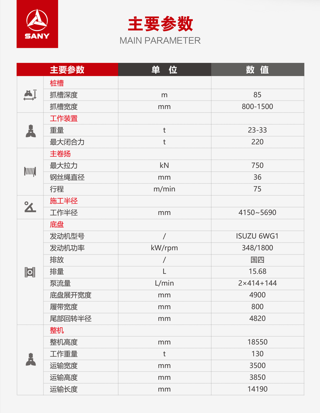 SH750-S是全新一代大型地下连续墙成槽专用施工设备,广泛应用于地铁、机场、旧城改造、水利建设等地下墙体或基坑工程。