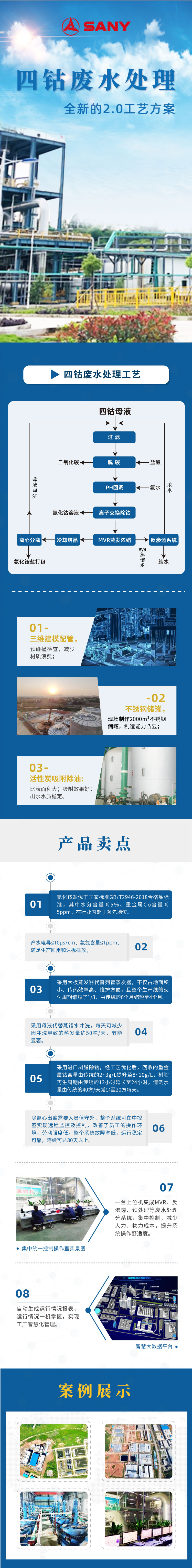 采用进口树脂除钻,经工艺优化后,回收的重金属钻含量由传统的2~3g/L提升至8~10g/L,树脂再生周期由传统的12小时延长至24小时,清洗水量由传统的40方/天减少至20方每天。