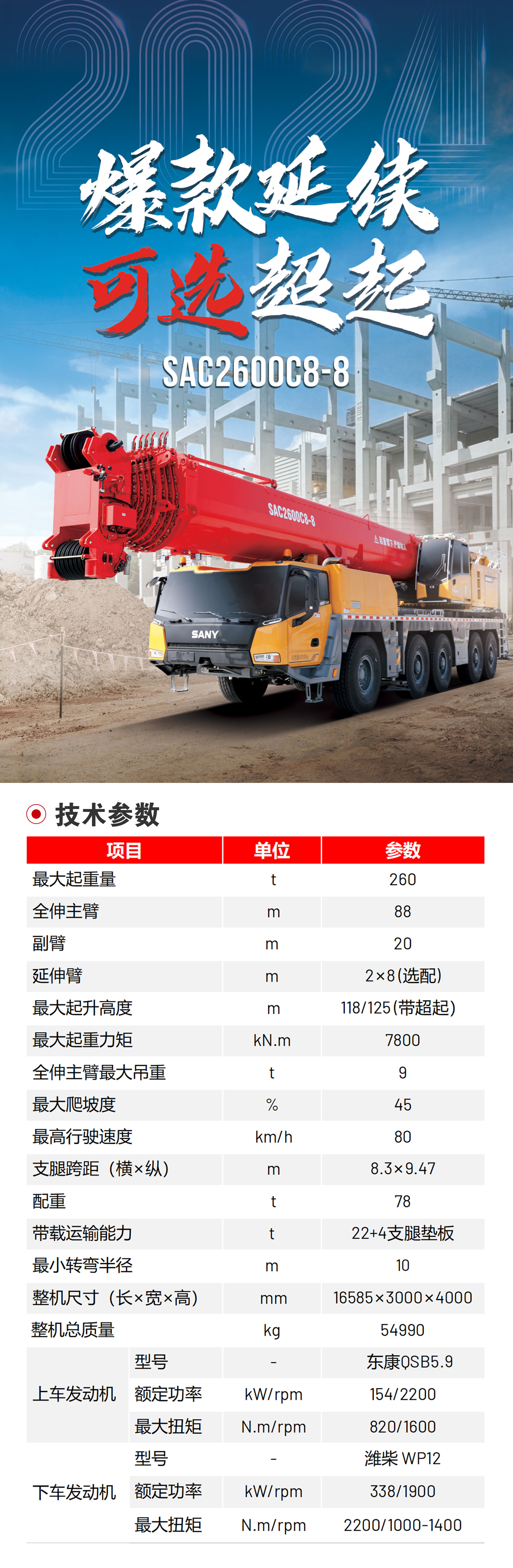 可选超起:带超起性能比肩300t,↑40%,超起副臂最长125m